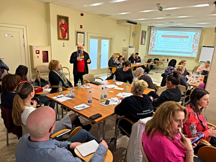 W dniach 4-5 marca odbyło się czwarte spotkanie z cyklu „Pomagać mądrze, z sercem i nie ulec wypaleniu”. W seminarium warsztatowym zatytułowanym „Widzieć sens mimo wszystkiego. Odporność egzystencjalna.” Uczestniczyło prawie 60 osób pracowników Caritas diecezjalnych z całej Polski.