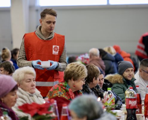 Gdy „Bóg się rodzi, a moc truchleje”, nikt nie powinien być sam. Już po raz dziewiąty Caritas w całej Polsce organizuje wieczerze wigilijne, które są największym tego typu wydarzeniem świątecznym w kraju. W tym roku w 90 miastach do Wigilii Caritas zasiądzie ponad 25 tysięcy osób potrzebujących, bezdomnych i samotnych. Do przygotowania uroczystych kolacji podane zostanie ponad 7,5 tony karpia i 28 tys. litrów czerwonego barszczu.