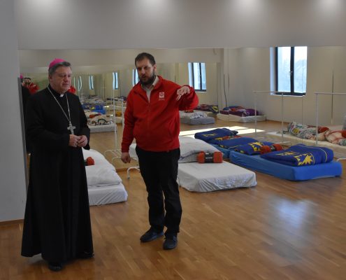 W miejscu, gdzie dawniej znajdowała się siłownia i sala fitness, osoby zza naszej wschodniej granicy mogą znaleźć tymczasowe schronienie. – To, co robimy jest wyjściem naprzeciw potrzebom, które zauważamy na wrocławskim dworcu kolejowym. Chcemy zapewnić uchodźcom godziwe warunki noclegu. Oczywiście to nie jest miejsce, które będzie przeznaczone dla nich na dłuższy okres czasu. Chcemy pomóc im odnaleźć spokój, przenocować i zastanowić się, gdzie udać się dalej – wyjaśniał podczas otwarcia noclegowni abp Józef Kupny, metropolita wrocławski.