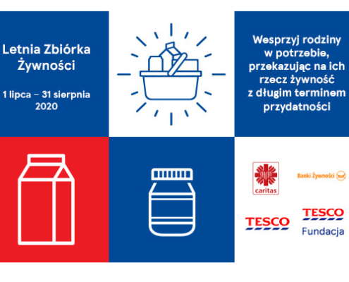 Chcąc wesprzeć osoby najbardziej dotknięte skutkami pandemii COVID-19 Caritas Polska wraz z Fundacją Tesco organizuje wśród klientów wszystkich sklepów sieci Letnią Zbiórkę Żywności. Potrwa ona od 1 lipca do 31 sierpnia. Zebraną żywność przekażemy najbardziej potrzebującym.