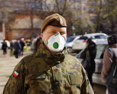 Żołnierze 16. Dolnośląskiej Brygady Wojsk Obrony Terytorialnej wspierają działalność jadłodajni we Wrocławiu. Codziennie kilku wojskowych pomaga utrzymać porządek w kolejce po zupę i wydaje gorące posiłki.
