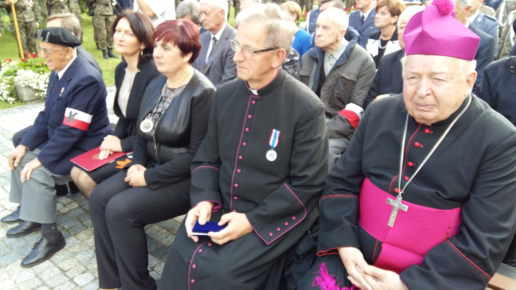 Po wspólnej modlitwie uczestnicy uroczystości przeszli pod pomnik Żołnierzy Armii Krajowej, gdzie odbyła się druga cześć obchodów ważnych dla historii Polski, podczas której przedstawiciele Armii Krajowej wręczyli pamiątkowe odznaczenia pięciu osobom, wśród których był ks. Władysław Jagustyn.
