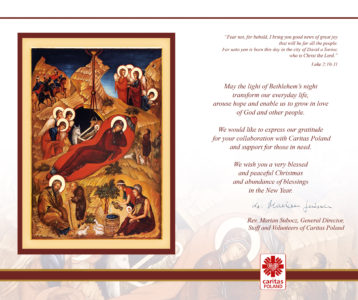 23 grudnia 2016Caritas w PolsceAktualnościDrodzy Współpracownicy, Wolontariusze i Ofiarodawcy Caritas Polska, przyjmijcie najlepsze życzenia z okazji Świąt Bożego Narodzenia!*** We wish all Caritas associates, volunteers and donors a Blessed Christmas! https://caritas.pl/wp-content/uploads/2016/12/Zyczenia_CP2016-7.jpg 2017 2409 Dorota Glica https://caritas.pl/wp-content/uploads/2025/10/logo-35-lecie-red.png Dorota Glica2016-12-23 22:30:182016-12-23 22:32:12Błogosławionych Świąt Bożego Narodzenia!