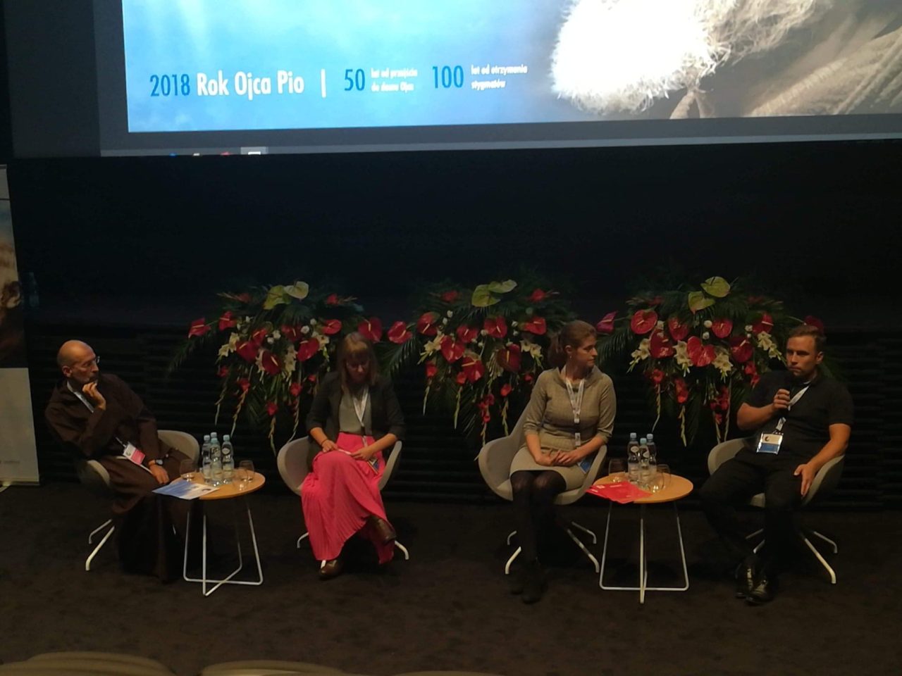 Bezpośrednio przed panelem członkowie delegacji Caritas Polska podzielili się swoim świadectwem wiary i wynikającego z niej zaangażowania do niesienia pomocy i przełamania siebie, kiedy świadczenie pomocy jest trudne, a czasem niewygodne. Kiedy potrzeba zejść z kanapy i założyć wygodne buty trekkingowe by dotrzeć do osoby potrzebującej, jak mówił Papież Franciszek podczas Światowych Dni Młodzieży w Krakowie. W czasie panelu Agnieszka Zarzyńska z Caritas Polska omówiła problem zaangażowania młodych ludzi do posługi wolontariackiej i zaprezentowała ruch Young Caritas, który ma charakter globalny. Starała się również wskazać wspólny mianownik dla duchowości Ojca Pio i poświęcenia swojego zaangażowania w pomoc drugiej osobie. Następnie pracownicy Sylwia Cieślar-Hazboun oraz Maciej Dubicki krótko zaprezentowali projekty pomocowe Caritas Polska na Bliskim Wschodzie, ze szczególnym uwzględnieniem sytuacji w Syrii i charakterystyką największego zagranicznego programu pomocowego, o nazwie „Rodzina Rodzinie”, w tym regionie świata. Maciej Dubicki przedstawił również zasady funkcjonowania programu oraz zaangażowanie polskich rodzin w niesienie bezpośredniej pomocy rodzinom syryjskim w Aleppo.