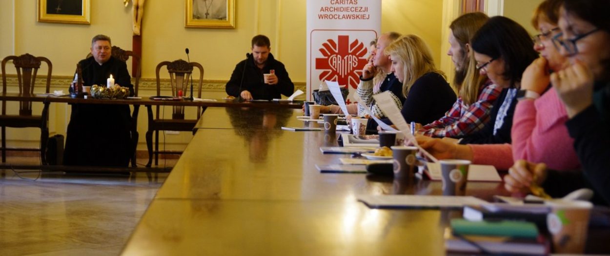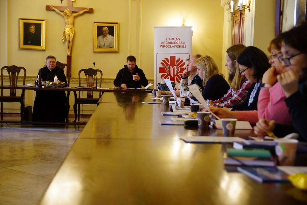 Opiekunowie Szkolnych Kół Caritas z Archidiecezji Wrocławskiej spotkali się we Wrocławiu aby wspólnie się formować i przygotować program działania na drugi semestr roku szkolnego. Podczas Eucharystii w homilii ksiądz Dariusz Amrogowicz, wrocławskiej Caritas zachęcił nauczycieli aby pokazywali dzieciom konkretne miejsca w których pomagają. – niech to same dzieci zaniosą paczkę żywnościową, niech osobiście przekażą termosy dla potrzebujących – mówił dyrektor. – W czasach w których rzeczywistość wirtualna często przysłania młodym prawdziwy świat trzeba im pokazać, pozwolić dotknąć tego co słabe, tego co ubogie, niczym Jezus który dotykał trędowatego. Oni muszą widzieć real a nie tylko świat wirtualny – podkreślił ksiądz Amrogowicz.