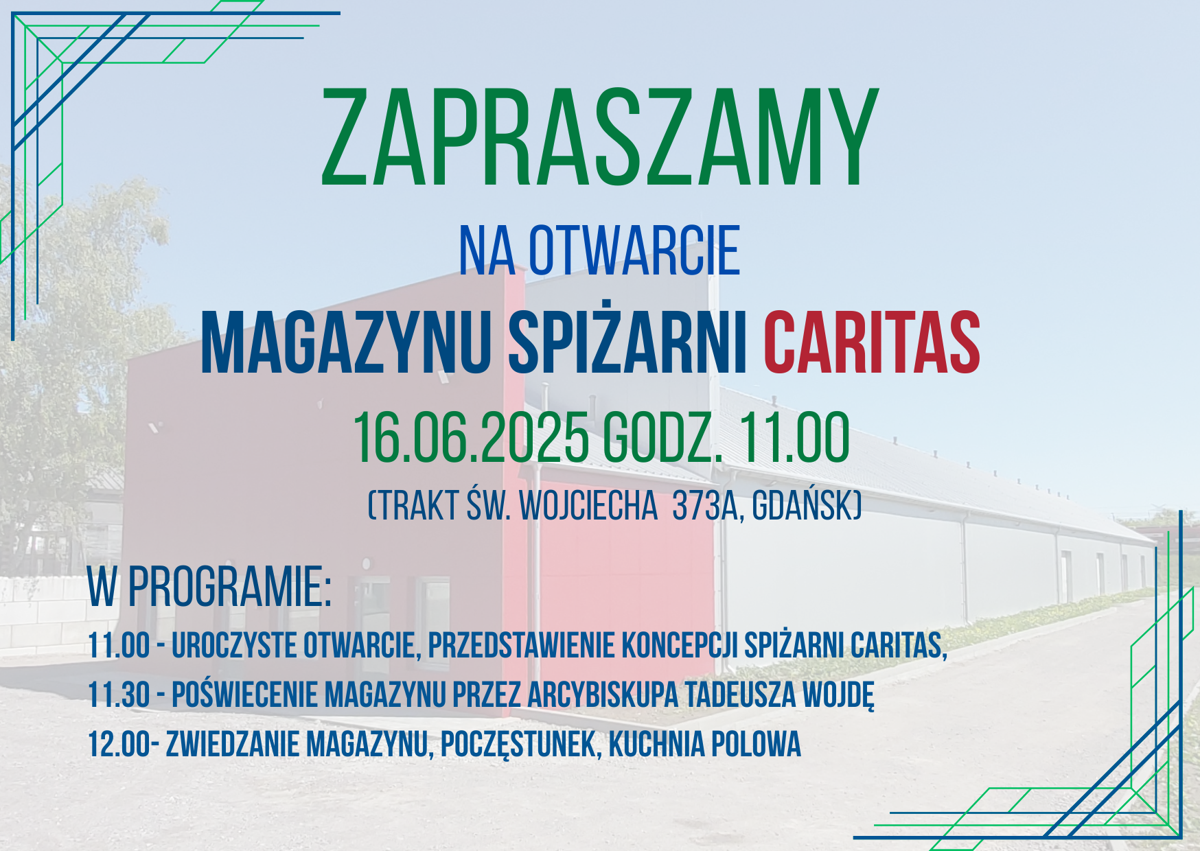 Z okazji 35-lecia działalności Caritas Archidiecezji Gdańskiej, 16 czerwca zostanie uroczyście otwarty Magazyn Spiżarni Caritas przy Trakcie Świętego Wojciecha 373A w Gdańsku. To ważny element programu walki z marnowaniem żywności oraz wsparcia osób potrzebujących – część projektu „Serce w słoiku” i ogólnopolskiej sieci Spiżarni Caritas.