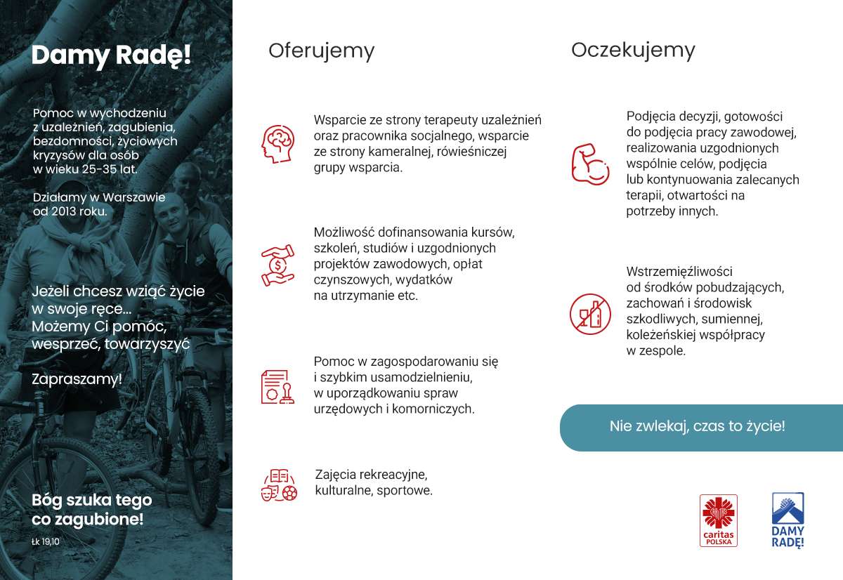 Zgłaszać się do programu można za pośrednictwem adresu e-mail: damyrade@caritas.org.pl.  Ulotka informacyjna [PDF].