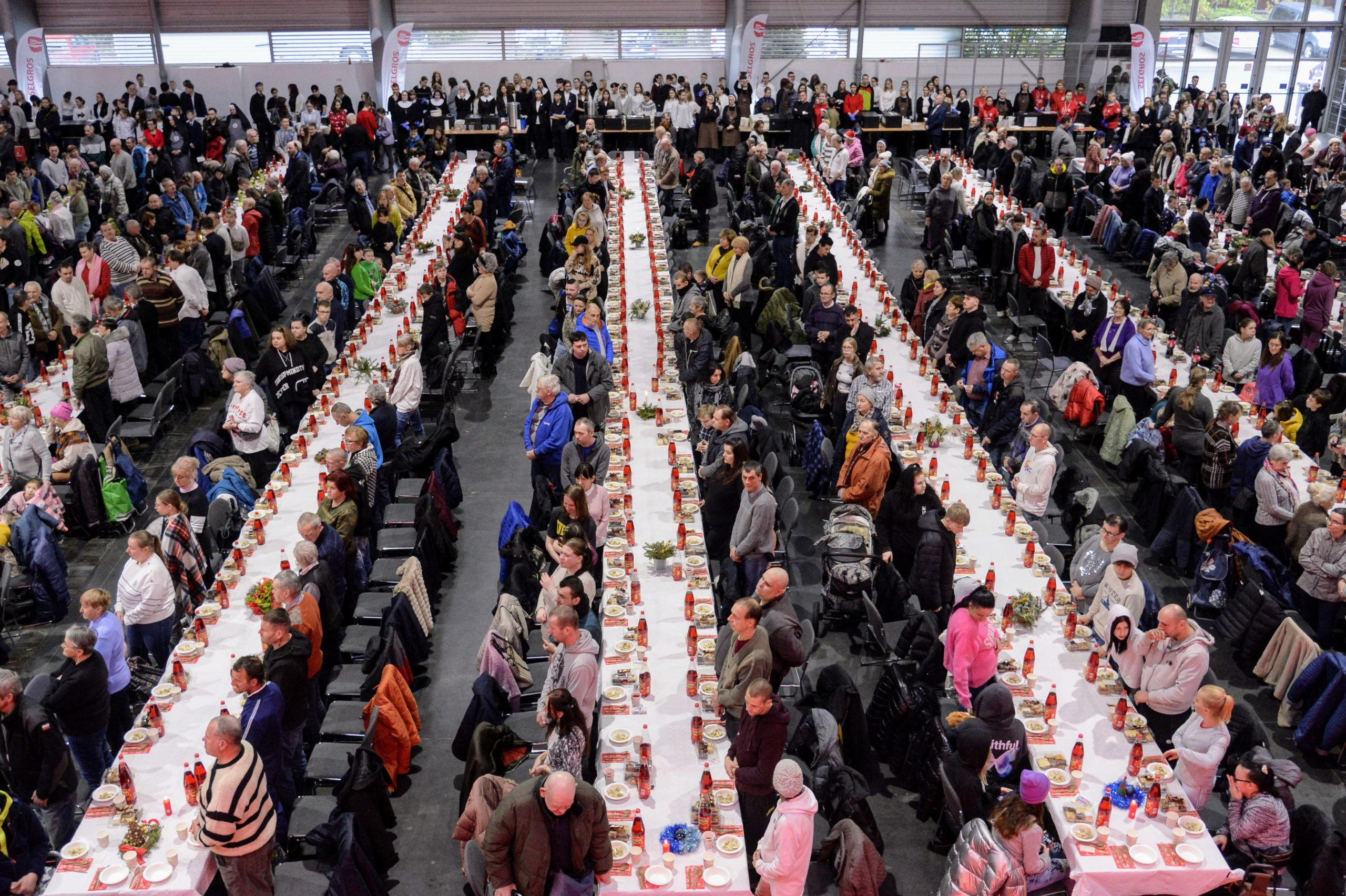 W tym roku na stołach Caritas będzie leżało 18 km białego obrusu – to o pół kilometra więcej niż w roku ubiegłym. Wciąż przybywa osób potrzebujących, ale na wieczerzy Caritas znajdzie się miejsce dla każdego. 18 km to odległość, którą dorosły człowiek idzie żwawym marszem przez ok. 4 godziny. To pokazuje, jak gigantycznym przedsięwzięciem jest rozłożenie tych nakryć dla 25 tys. gości.