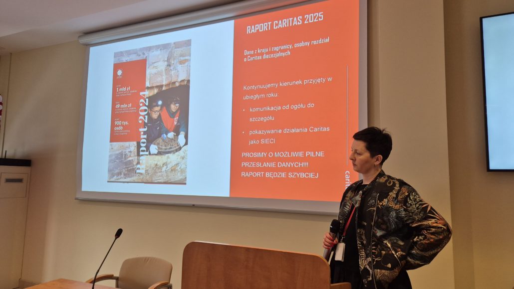 Na zakończenie dwudniowego spotkania pani Karolina Waś, dyrektor Biura Komunikacji i Promocji w Caritas Polska, poruszyła temat transformacji struktur i strategii komunikacyjnych organizacji, wyznaczając kierunek działań na rok 2026. Przedstawiła nową, wyspecjalizowaną strukturę Biura, opartą na trzech filarach: prasowym, digitalowym oraz promocyjno-kreacyjnym, co ma zapewnić zintegrowaną komunikację 360 stopni. Podkreśliła przy tym wagę nowoczesnego podejścia, które łączy narzędzia cyfrowe z szerokim otwarciem na outdoor, aktywne współprace mediowe oraz strategiczne partnerstwa. Takie kompleksowe działania mają na celu zapewnienie pełnej spójności narracji oraz jeszcze większą skuteczność w budowaniu trwałych relacji i docieraniu do darczyńców.