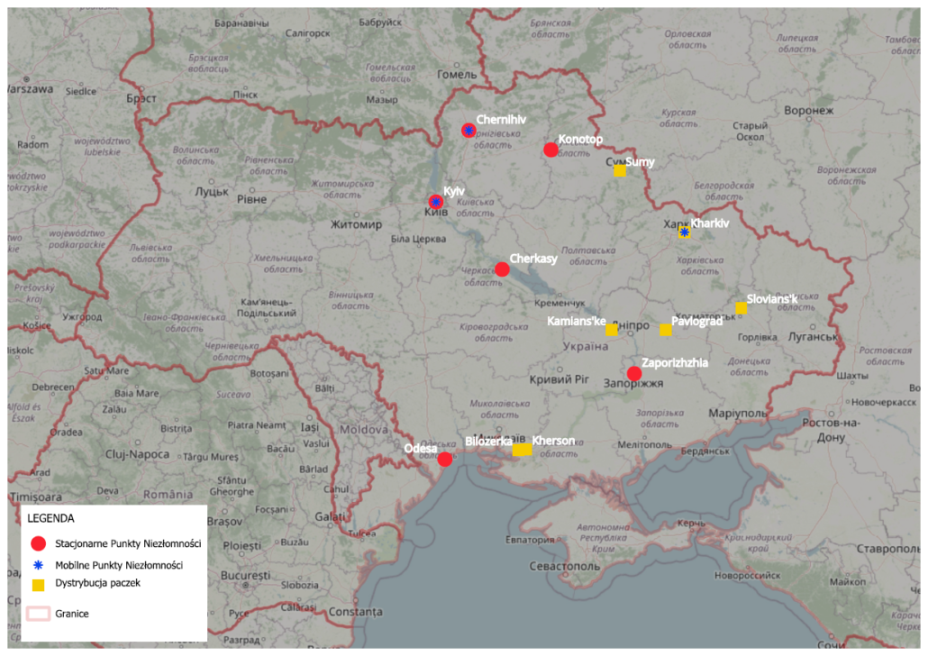 By wesprzeć mieszkańców Ukrainy – a są to przede wszystkim ludzie, którzy nie mieli możliwości opuszczenia kraju, czyli osoby starsze, chore, niepełnosprawne i ubogie – Caritas Polska współpracuje z Caritas-Spes w prowadzeniu Punktów Niezłomności, które stały się bastionami przetrwania dla tysięcy ludzi. Takie „wyspy ciepła” prowadzone są w Kijowie, Charkowie, Odessie, Chersoniu, Biłożerce, Czernihowie, Słowiańsku, Sumach, Pawłogradzie, Kamieńsku, Czerkasach, Zaporożu, Nikopolu i Konotopie.